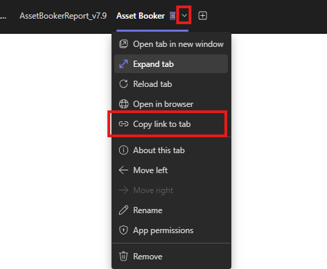 Before running the flow first copy the link to the MS Teams tab where the Asset Booker desktop and mobile app is published.