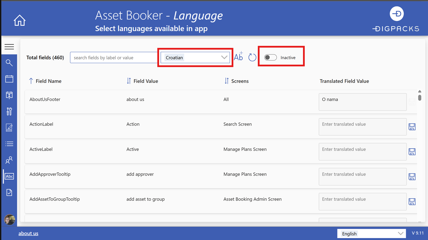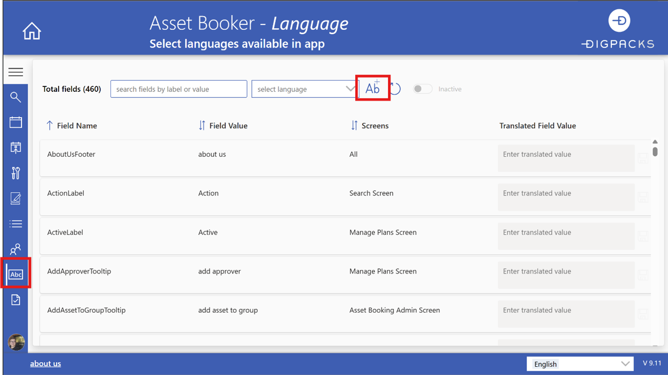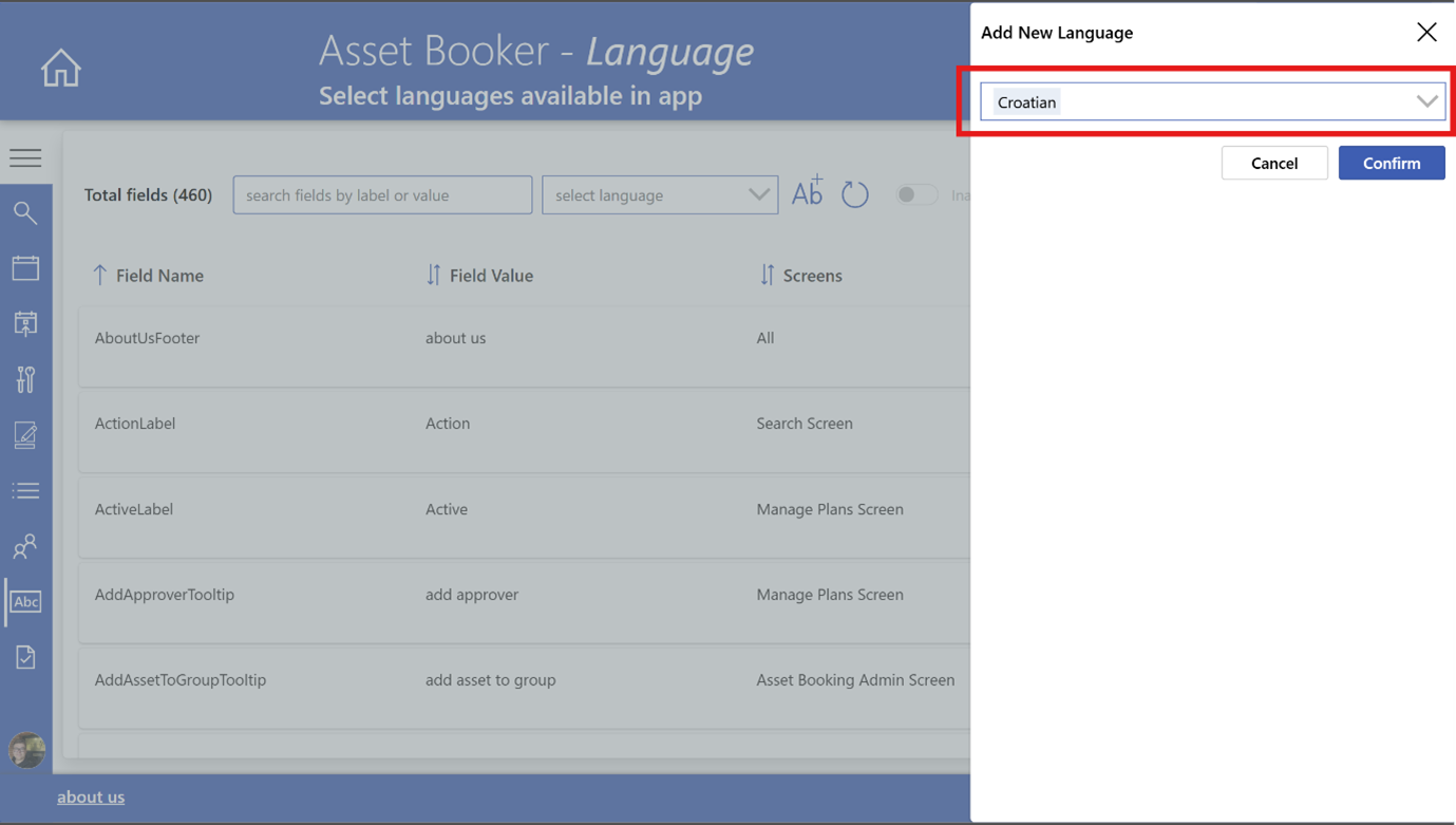 A new feature has been added: Translation generation for labels within the Asset Booker application is now available to be set up per language on demand.