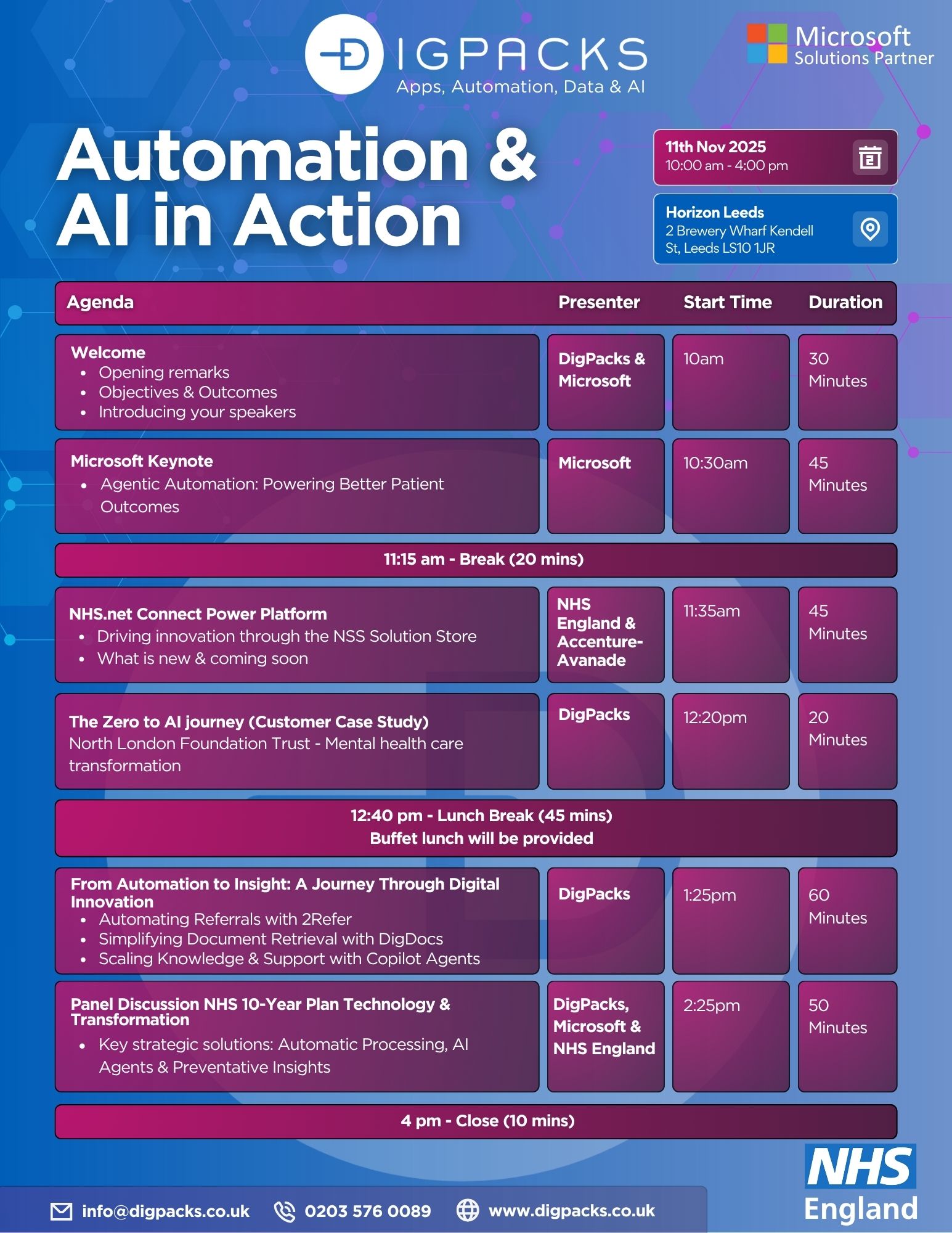 Following the success of our previous event in London, we’re bringing AI & Automation in Action to Leeds on 11th November 2025. This is your chance to see how NHS organisations are transforming processes with Microsoft Power Platform.
